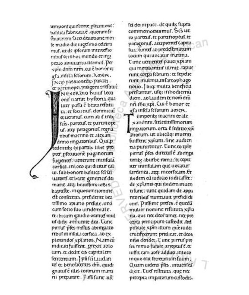 En effet, je peux énumérer trois légendes ou passions, toutes contenues dans les codex de la Bibliothèque Vaticane. La première et sans doute la plus ancienne et importante, est présente dans le CODEX 6933. La deuxième, copie de la première et présentant de légères modifications, est contenue dans le CODEX 6168. La troisième résumant la première et sans véritables modifications, se retrouve dans le CODEX 6458.