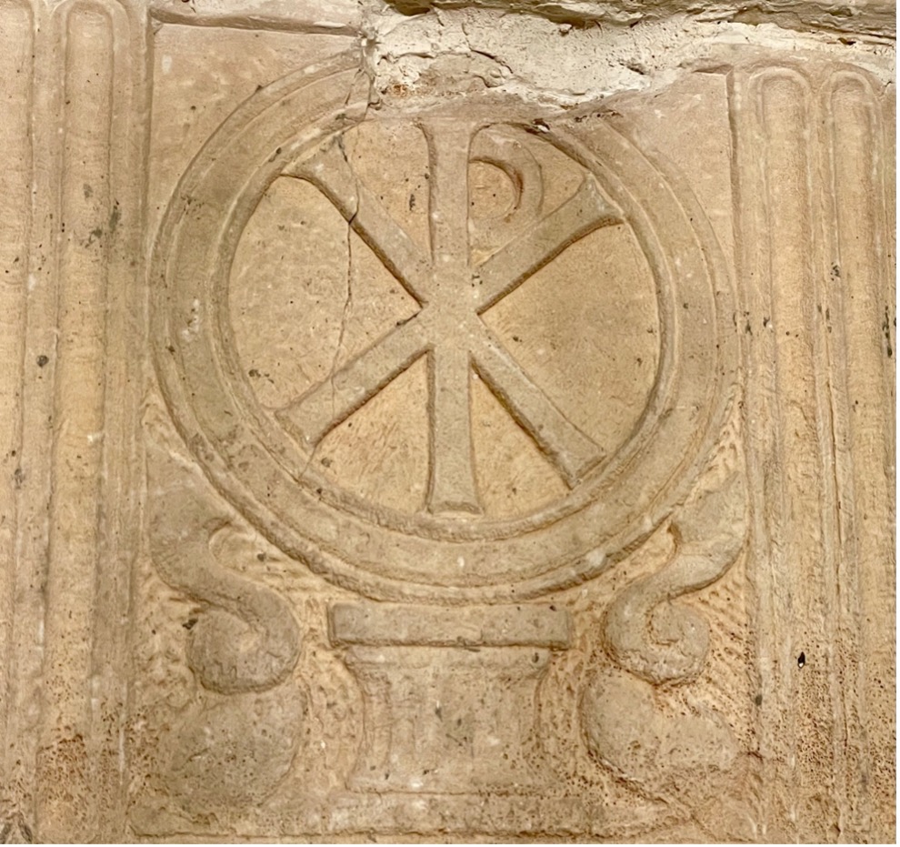 En effet, les deux lettres grecques superposées l’une sur l’autre, le Khi pour le X et le Rhô pour le P, sont les premières lettres du mot « Christos ». Ce symbole était utilisé pendant la période du christianisme primitif de Restituta. Et même avant cela,  la superposition du khi et du Rhô se trouvait déjà couramment sur des amphores. Plus tôt encore,  on les retrouvent dans des manuscrits païens égyptiens  et d’autres grecs. L’entrelacement des deux mêmes lettres  était alors l’abréviation du mot «  Khrēstós »  dont le sens était « utile, favorable, de bon augure ».